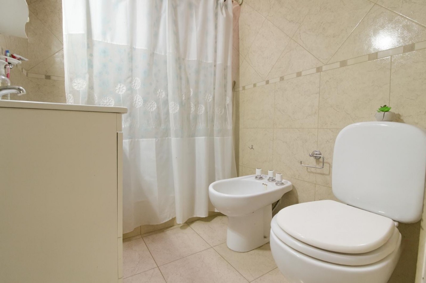 La cocina se comunica con el living-comedor, el cual posee un ventanal al frente. Adyacente a este sector, encontramos un ambiente adicional, adaptable como habitación o escritorio, con ventana al patio.