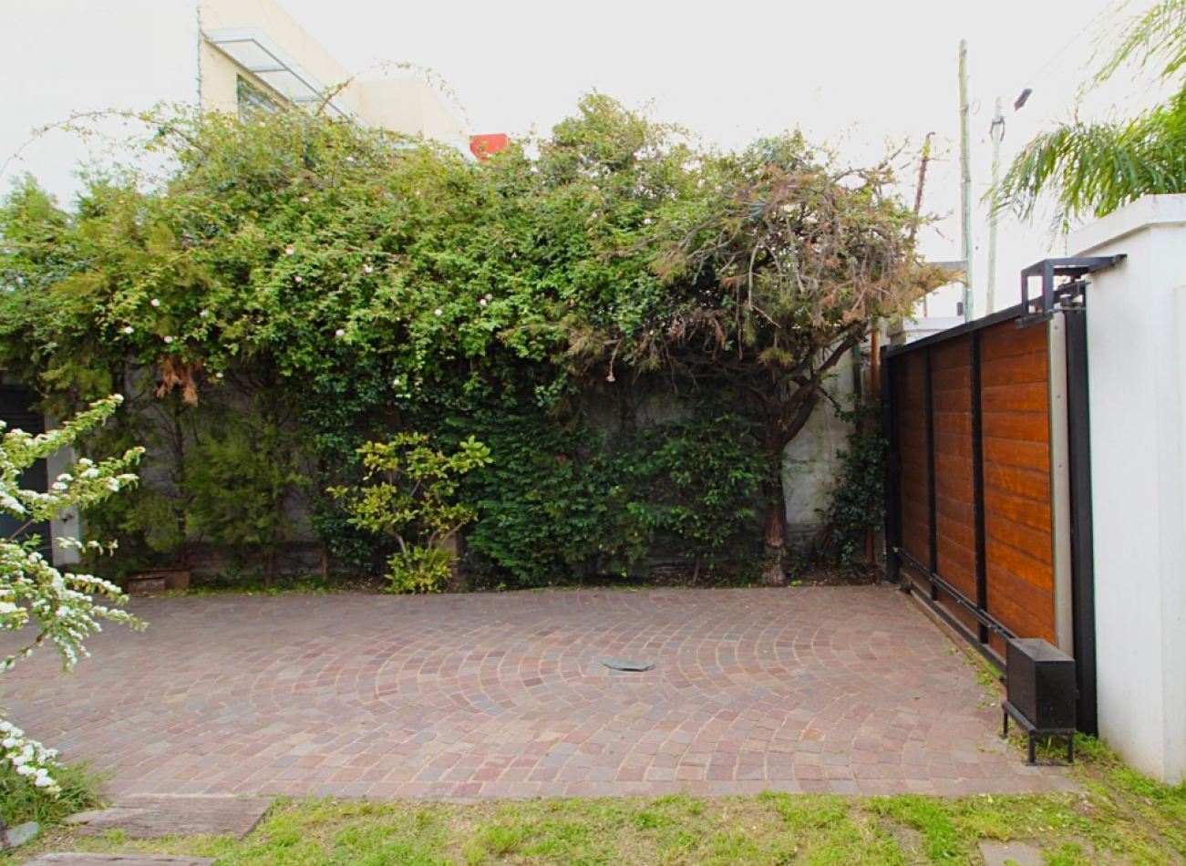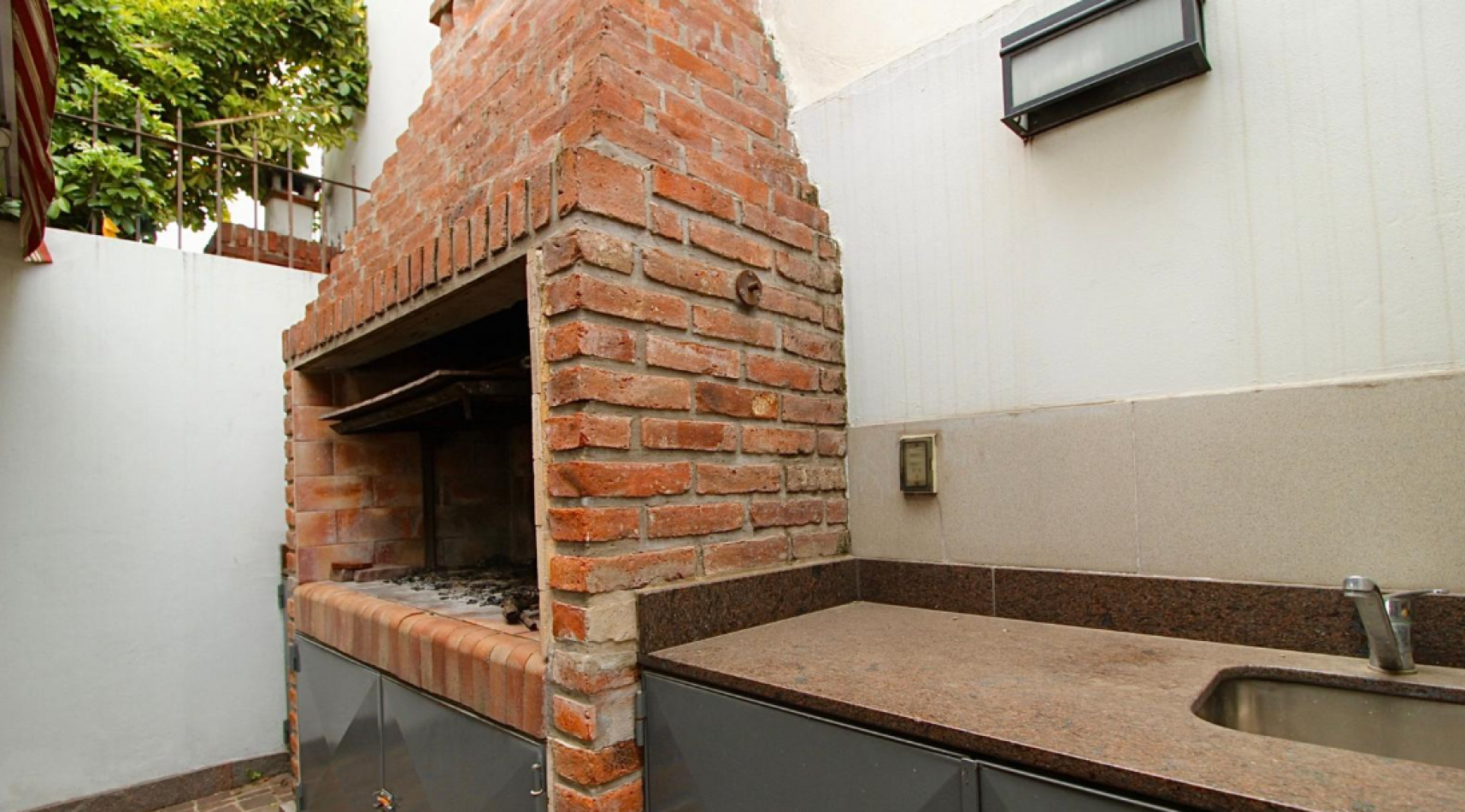 Parrilla lateral, ubicada junto a las cocheras descubiertas, con comunicación directa con la cocina. Además, cuenta con toldo eléctrico para mayor comodidad.