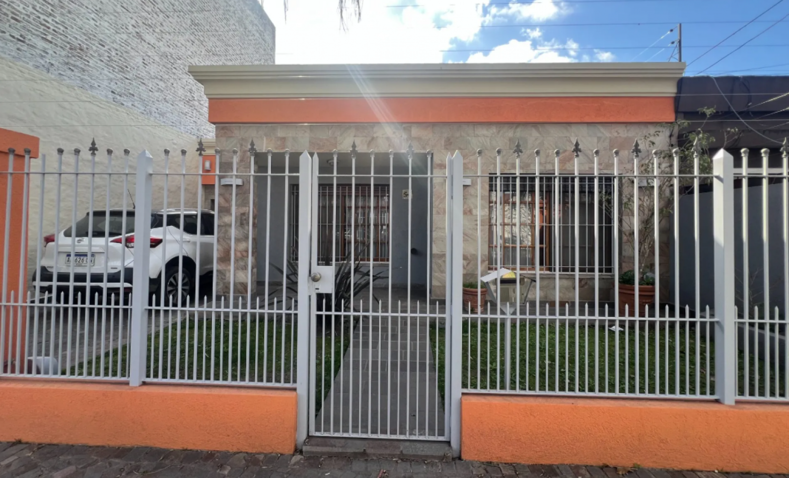 Entrada descubierta para un auto y Garage para otro auto con portón automatizado.