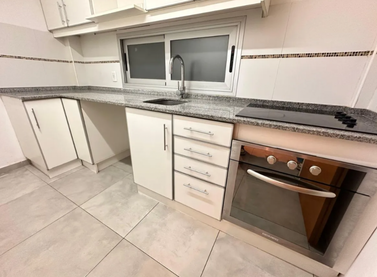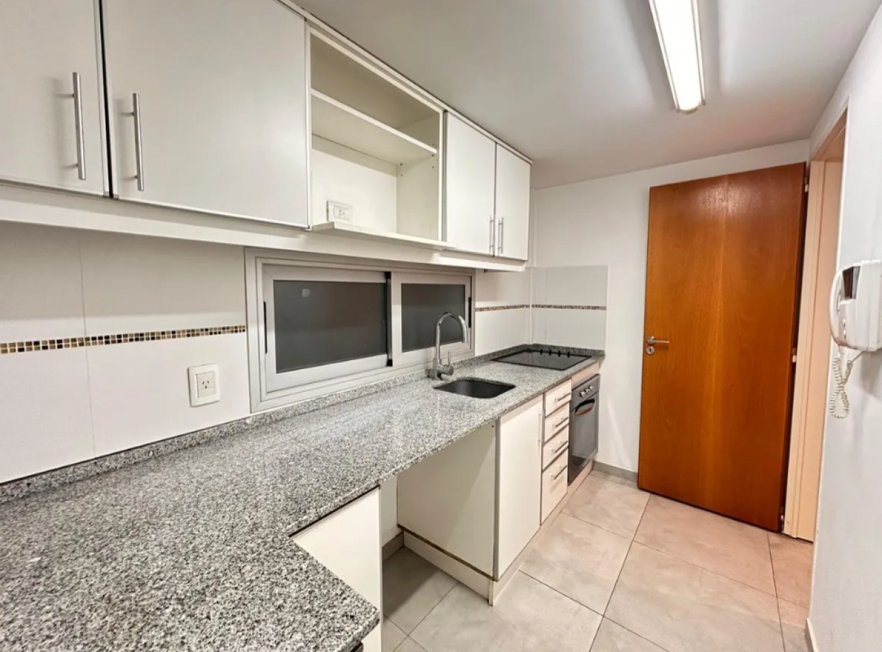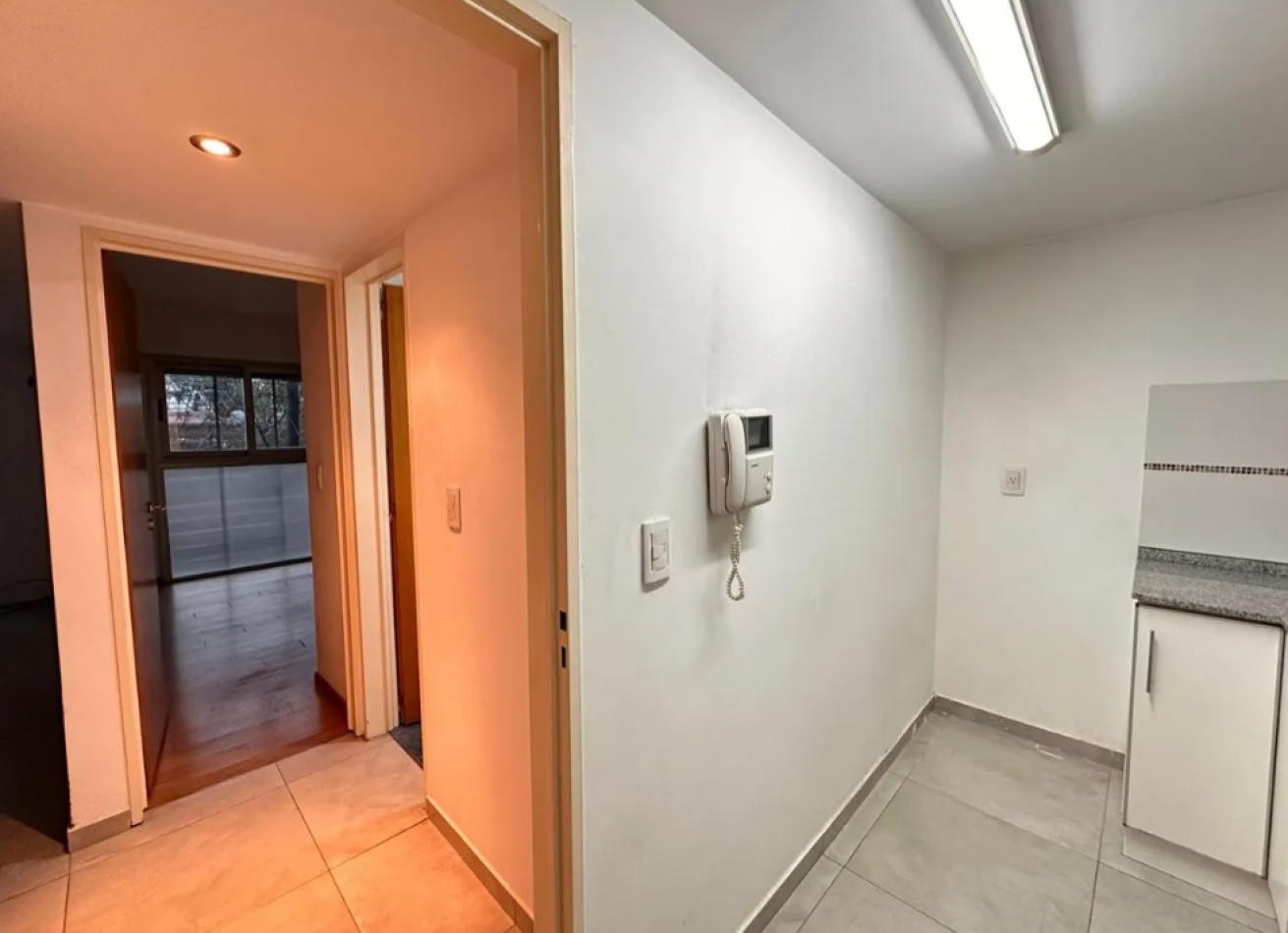 Al ingresar, nos encontramos con el living-comedor con salida directa al balcón, ideal para disfrutar del aire libre. Los pisos son de porcelanato, de fácil mantenimiento y estilo moderno. La cocina está separada del ambiente principal y equipada completamente con artefactos eléctricos: anafe, horno empotrado, espacio para lavarropas y heladera, brindando comodidad y funcionalidad.