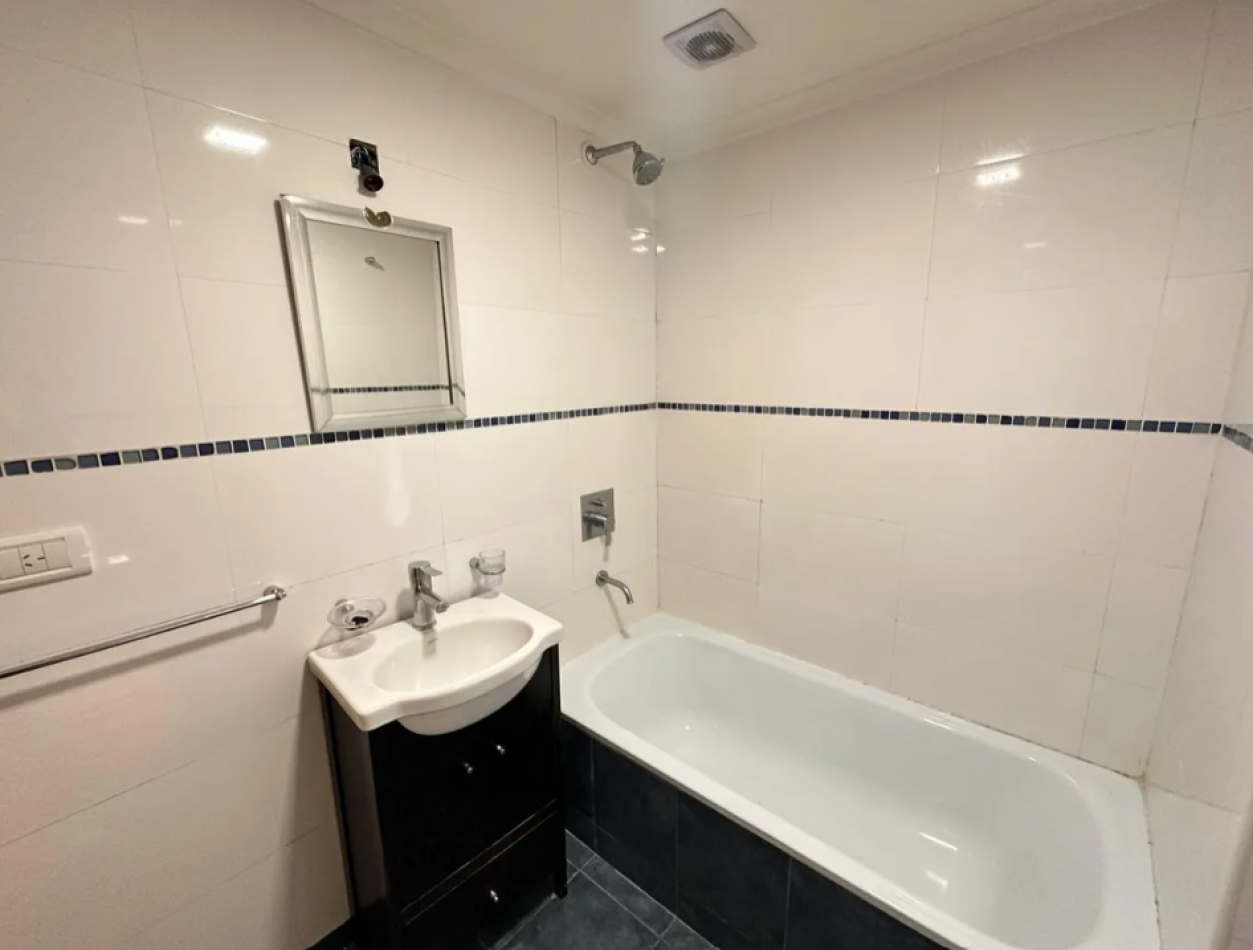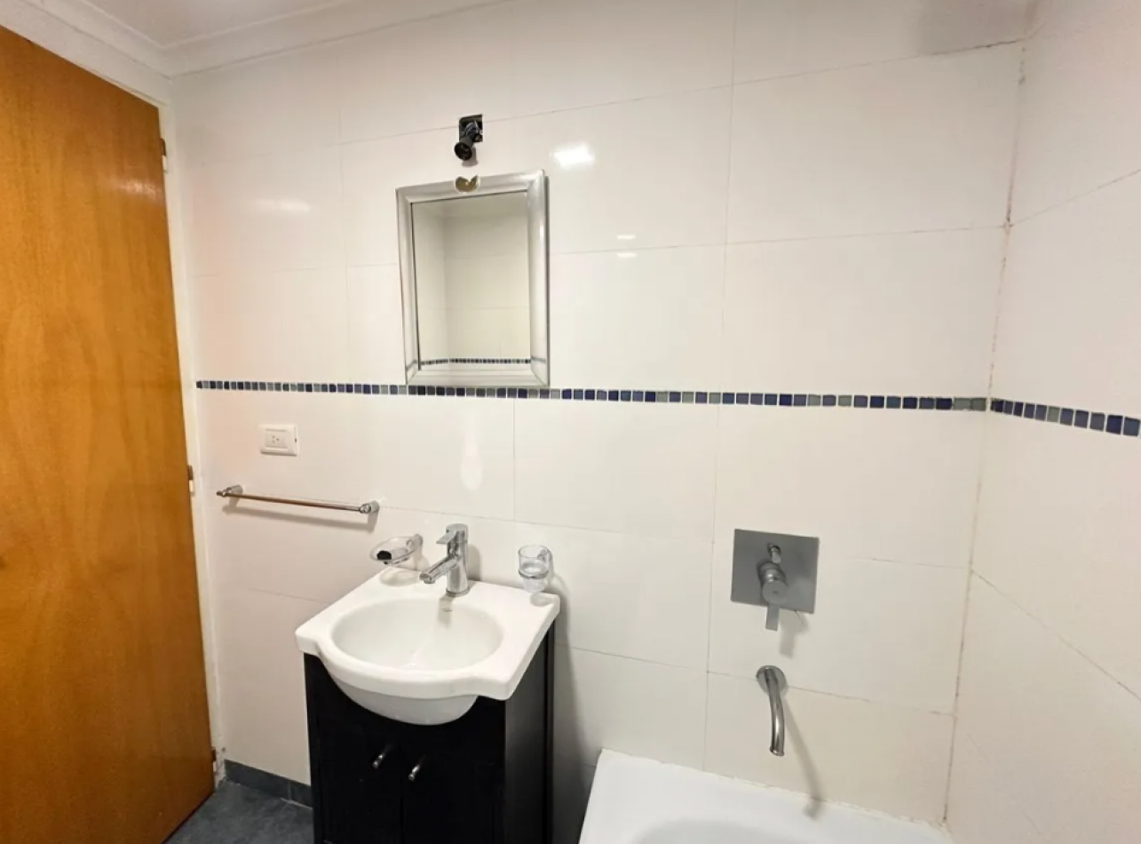El baño es completo, con bañera, extractor y terminaciones en perfecto estado. El dormitorio posee pisos flotantes, placard con interiores terminados y ventana con rejas y persiana, al igual que el ventanal del living, brindando seguridad y privacidad.