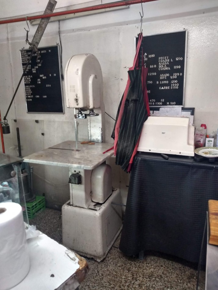 2 heladeras mostrador, 1 heladera láctea, 2 heladeras botellera, 1 frezer, 1 heladera carnicera 3 puertas, picadora de carne, balanza media res, maquina cortadora fiambre, cierra circular para carne, 2 balanzas electrónicas, registradora última generación, estanterías, góndolas, aire acondicionado, herramientas para cierra, y picadora.